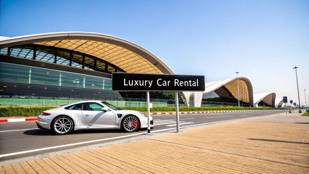 Imagine this: you’ve just landed at Dubai International Airport (DXB), and instead of heading for the taxi rank, you're walking straight to a waiting Rolls-Royce or Ferrari. That’s not just a travel fantasy; it’s a reality we make happen every day. This guide will walk you through everything you need to know for a flawless luxury car rental Dubai airport experience, turning what's usually a travel chore into the first incredible highlight of your trip.